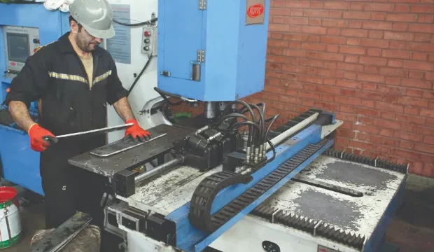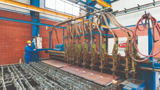 در مرحله پنجم، نقشههای ساخت و تولید را که توسط کارفرما تأیید شدهاند به سرپرستان تولید، برنامهریزی، کنترل پروژه و کنترل کیفی ارجاع میدهیم. طبق دستورالعملها و پس از هماهنگی با سرپرستان، آهنآلات تهیه شده را پس از اعمال کنترل کیفی به قسمت برشکاری و قطعهزنی ارسال میکنیم. ما در سازورسازهآذرستان با بهکارگیری ماشینآلات روز دنیا شامل دستگاههای پیشرفته و تماماتوماتیک برش سرد و گرم CNC Cutting ,CNC Plasma و گیوتین، برش استیفنرها و قطعات الحاقی را انجام میدهیم. در این بخش، برای سوراخکاری از دو روش پانچ و دریل استفاده میشود که برای این منظور کارخانه به دستگاههای پانچ و دریل CNC مجهز شده است.
