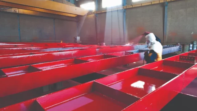 از آنجایی که ثمره تولیدات بعد از اتمام این مرحله به صورت عینی قابل مشاهده است، این مرحله از مراحل پر اهمیت کار محسوب میشود. رطوبت و دمای محیط سالن رنگ، هنگام اجرای عملیات رنگآمیزی بهوسیله دستگاه دماسنج و رطوبتسنج، اندازهگیری میشود. سازهها بعد از رنگ شدن بازرسی میشوند تا به منظور دسترسی به ضخامت مورد نظر، صحت چسبندگی رنگ و در نهایت صافی سطح رنگ (Flatness) طبق استانداردهای بینالمللی رعایت شود. برای تعیین ضخامت فیلم خشک رنگ (DTF) از ضخامتسنجرنگ و برای صحت چسبندگی رنگ از روشهای Cross-Cut و X-Cut استفاده میشود، همچنین برای رنگآمیزی دستگاههای Airless بهکار میروند.